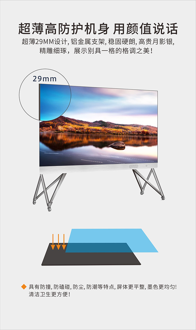 同时,整机厚度达29mm,相比投影仪,减少实际使用时占用空间,非常方便在政务企业、集团企业、教育行业、金融行业、医疗行业、零售行业、交通枢纽、新闻联播、公共娱乐等场合使用。kaiyun开云智能终端一体机LTV2.0单屏大于110寸,无视觉拼缝,可以满足多人的观看,且全屏显示效果,保证了图形、图表、文字等关键性信息的准确表达。