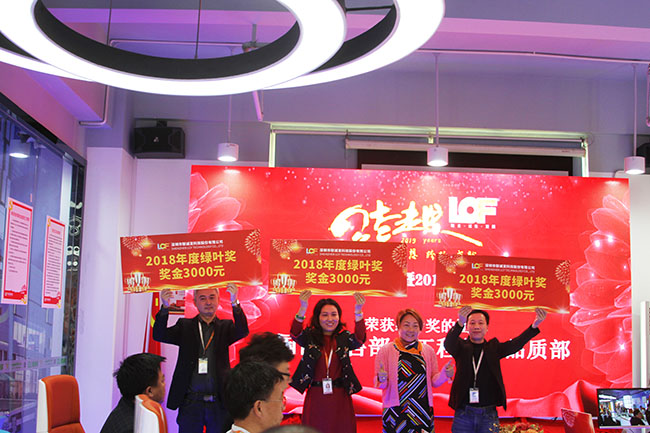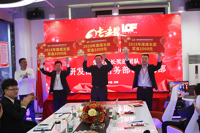 到最后,大会通过对各个部门负责人的演讲风格、内容进行打分评比,评选出年度红花奖、年度绿叶奖、年度成长奖,龙平芳女士、黄董事长、刘军副总经理分别为获奖部门颁发了奖牌。