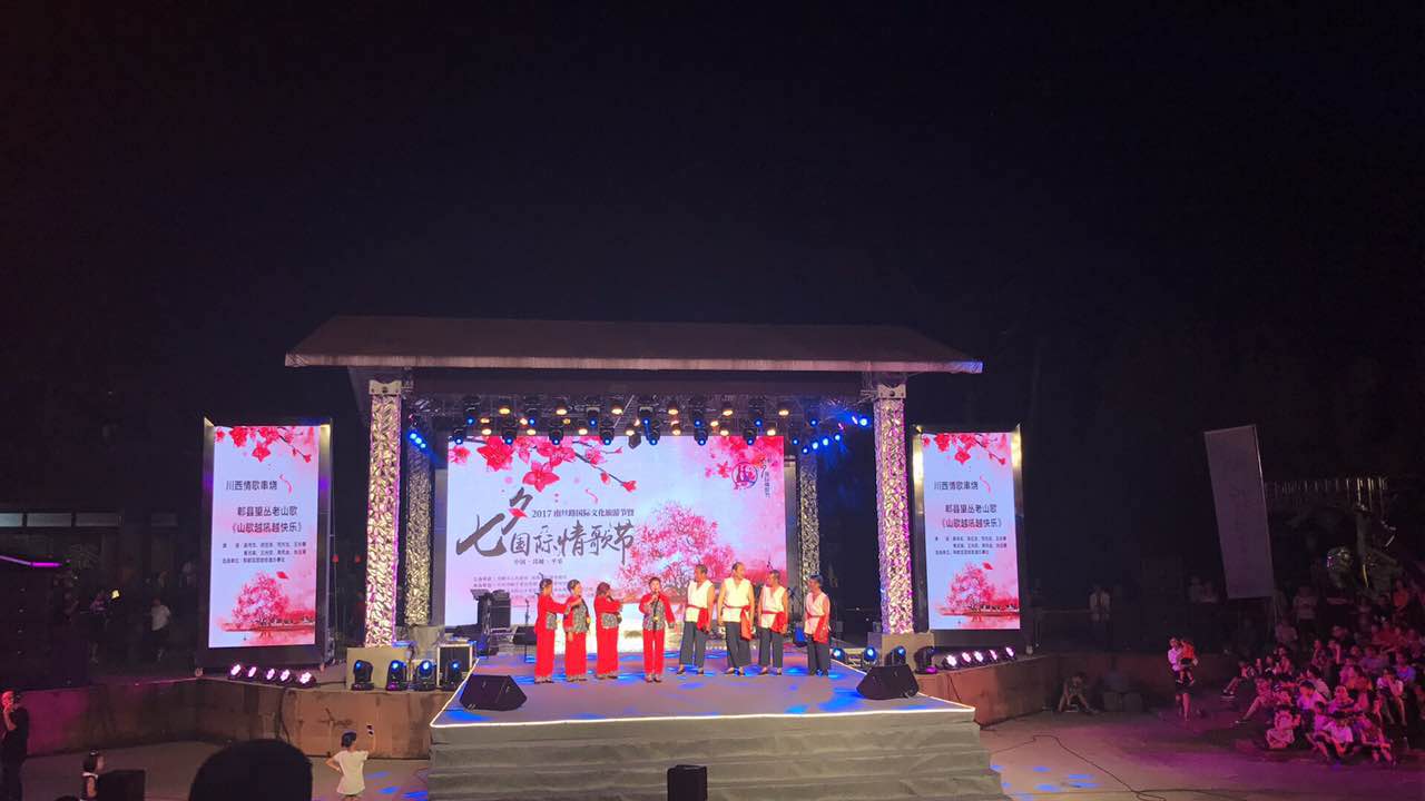 秋风送爽,七夕传情,8月26日,由邛崃市人民政府、成都市广播电台主办的南丝路国际文化旅游节曁2017成都首届七夕国际情歌节在邛崃平乐古镇平沙落雁音乐广场盛大开幕,成都电视台、成都新闻广播FM99.8对晚会进行了现场直播。