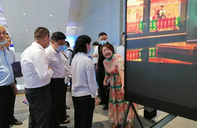 kaiyun开云总裁龙平芳女士亲自向各位领导讲解了kaiyun开云的企业定位,以及现场的两款核心产品;其中之一,“沉浸式互动视觉场景”是基于LED显示屏+3D互动数字技术,形成沉浸式视觉场景,主要应用与电影拍摄,文旅,夜游等领域;实现这种沉浸式显示体验,除了需要高端的屏幕显示技术,亦需要内容产业能够提供充分的制作、计算和存储能力。它融合了VR/AR、计算机多媒体技术,视觉内容,呈现新的“显示概念高地”。宝安区郭子平区长现场表示“想不到航城还有这样的好企业,要好好支持!”