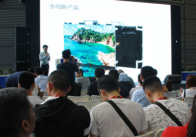 在新产品发布会上,kaiyun开云研发总监向大家介绍了小间距新品“追梦”系列对比COB封装的优势及行业发展的的现状。全场座无虚席,现场气氛热烈。